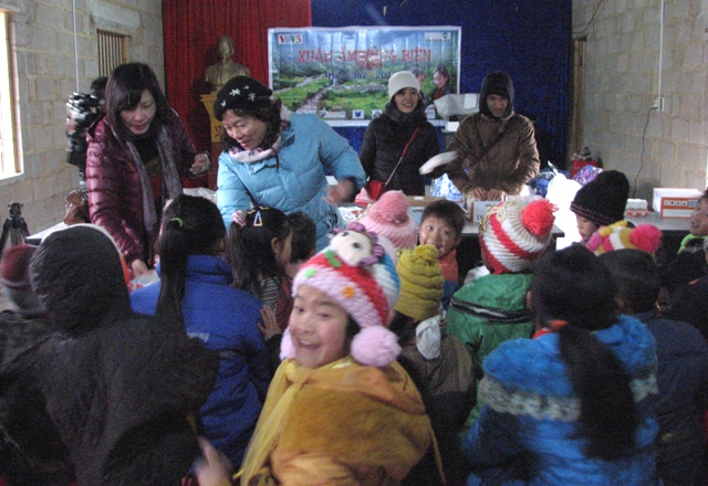 (VOVworld)- 本次活动以“边境地区的温暖春季”为主题,其中包括慰问、赠送礼物、文艺表演等活动。礼物主要是衣服、被子、方便面、奶制品、书本等,总值约一亿越盾,发放给当地近400名学生。此外,代表团还向当地六个边界乡村的教师和100户贫困家庭赠送礼物。