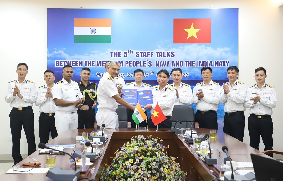 (VOVWORLD) - 越南与印度海军力量3月22日在海防市举行第5次参谋军官磋商会。越南海军副参谋长、海军少将范文雄同印度海军副参谋长、海军少将巴普纳(Nirbhay Bapna)主持会议。