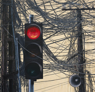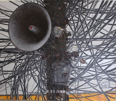 凭着艺术家敏锐的眼睛,阮玉民捕捉到了越南城市这道特殊的街景,并在自己的作品中展现了出来。对他来说,想到越南街头,就免不了想到电线杆和上面凌乱的电线。